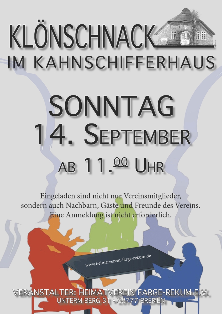 Der Heimatverein Farge-Rekum lädt am Sonntag, dem 14. September zu seinem Klönschnack ein.