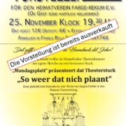 Aus diesem Anlass lädt der Heimatverein Farge-Rekum e.V. alle Interessierten, die diese Gelegenheit nutzen möchten herzlich ein. Unser Kontaktpolizist wird seine Arbeit und seine Aufgaben im Revier vorstellen und evtl. sicherheitsrelevante Themen ansprechen. Vorgesehen hat der Heimatverein, das es bei Kaffee und Kuchen zu einem ungezwungenen Informationsaustausch kommt